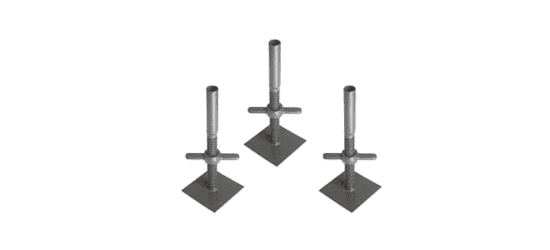A Oliveira Locação de Equipamentos oferece sapatas ajustáveis resistentes, ideais para nivelar andaimes em qualquer tipo de terreno ou piso.
